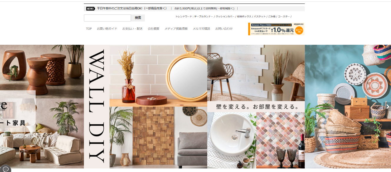 他にもインテリア雑貨、キッチン雑貨など多数の商品展開がされています。